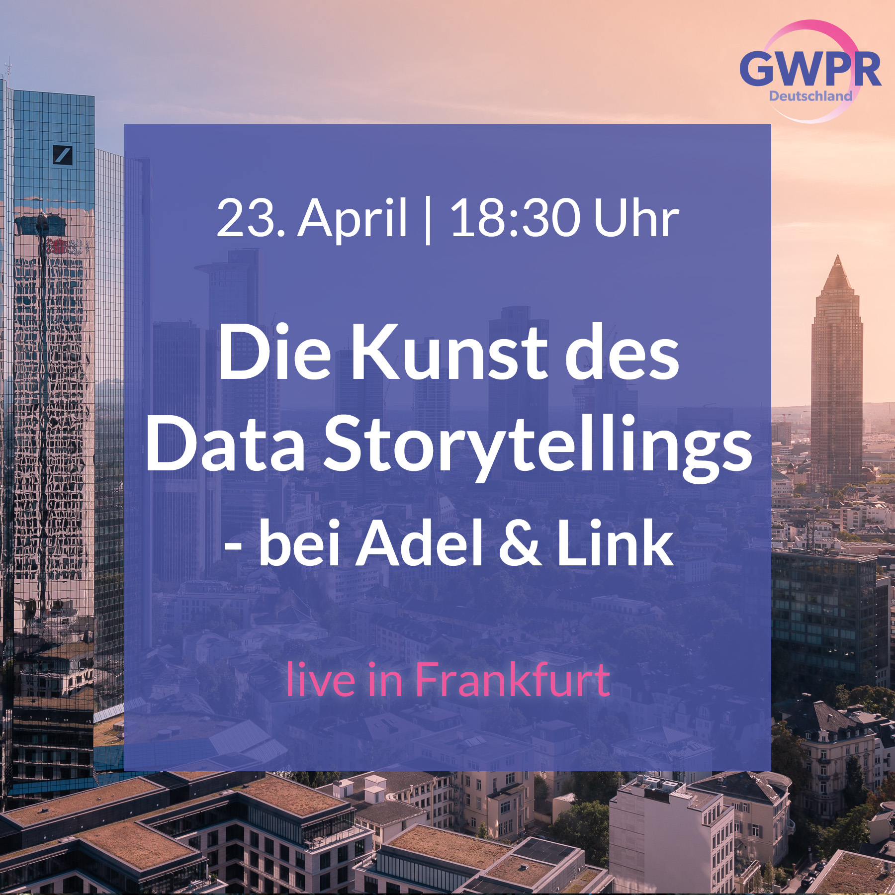 Liebe GWPR-Kolleginnen, Die Kunst des Data Storytelling – wie Daten zu Schlagzeilen werden Wir freuen uns sehr über die Einladung unseres GWPR-Mitglieds Natalie Link zu einem GWPR-After Work in ihre Agenturräumlichkeiten in Frankfurt. Glaubwürdigkeit braucht Fakten, aber Aufmerksamkeit braucht Emotionen. Wie gelingt der Spagat zwischen harter Statistik und fesselndem Storytelling? In einer Welt der Informationsüberflutung reicht „valide“