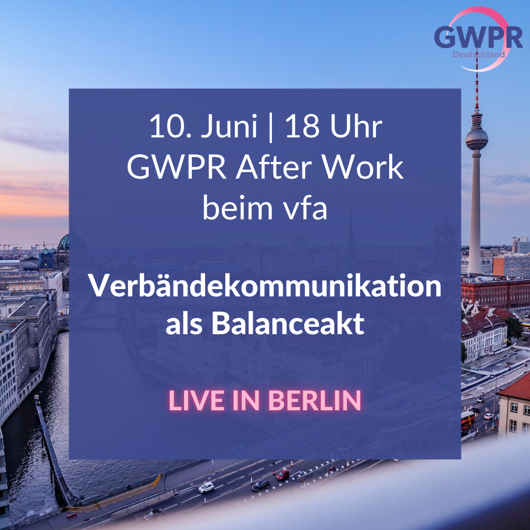 Liebe GWPR-Mitglieder, wir danken Kristin Breuer, Geschäftsführerin Kommunikation beim vfa (Verband forschender Arzneimittelhersteller), für die Einladung nach Berlin in ihre Räumlichkeiten. „Zwischen Mitglied und Ministerium: Verbändekommunikation als Balanceakt!“ In einer Zeit, in der Geschäftsmodelle, Märkte und regulatorische Rahmenbedingungen immer weiter auseinanderdriften, wird die Rolle von Verbänden anspruchsvoller – und wichtiger. Sie bewegen sich zwischen den