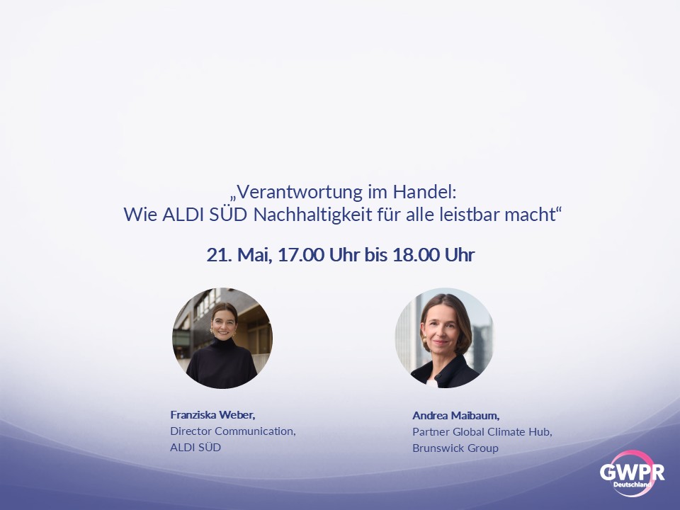 Liebe Mitglieder und Unterstützerinnen von GWPR Deutschland e.V., wir laden Euch herzlich zu unserer nächsten Online-Session ein, die sich einem der zentralen Themen unserer Zeit widmet: Nachhaltigkeit – und wie